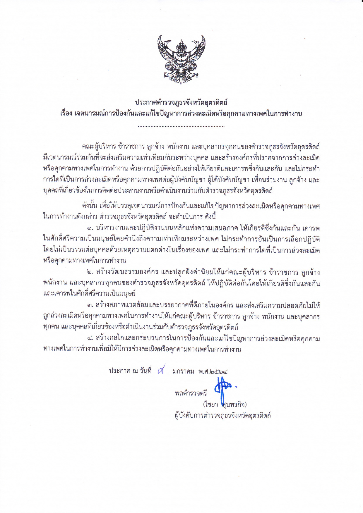 ประกาศเจตนารมณ์การป้องกันแก้ไขการล่วงละเมิด/คุกคามทางเพศในการทำงาน