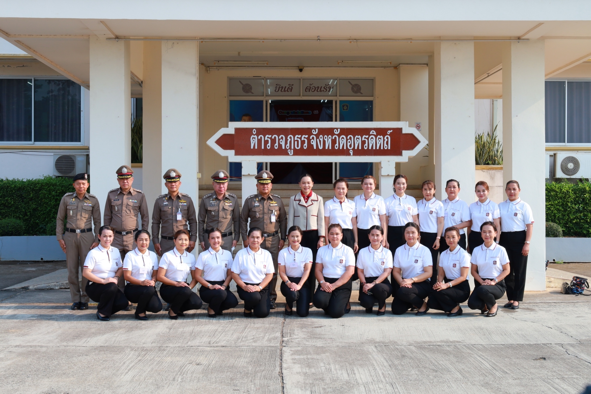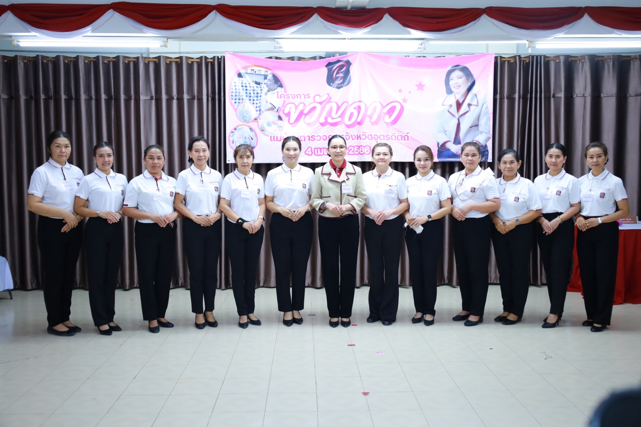 วันที่ (4 เม.ย.66) เวลา 08.30 น. พล.ต.ต.สุทธิพงศ์ เป๊กทอง ผบก.ภ.จว.อุตรดิตถ์ ,พ.ต.อ.ศิริโชติ ธเนศราภา ,พ.ต.อ.พีระเพชร อุบลจิตต์ รอง ผบก.ภ.จว.อุตรดิตถ์ ,พ.ต.อ.รัชกฤต เมฆวัฒนกุล ผกก.ฝอ.ภ.จว.อุตรดิตถ์ ,คุณฑิตยา ประภากรณ์ ประธานแม่บ้านตำรวจภูธรจังหวัดอุตรดิตถ์ พร้อมคณะแม่บ้าน ร่วมต้อนรับคุณภคมน พิมลศรี ประธานชมรมแม่บ้านตำรวจภูธรภาค 6 ประธานพิธี เปิดอบรมโครงการ “ขวัญดาว” เพื่อสร้างรายได้ให้แก่ครอบครัวตำรวจ(ฝึกทักษะงานปักผ้า) ณ ห้องอเนกประสงค์ ภ.จว.อุตรดิตถ์