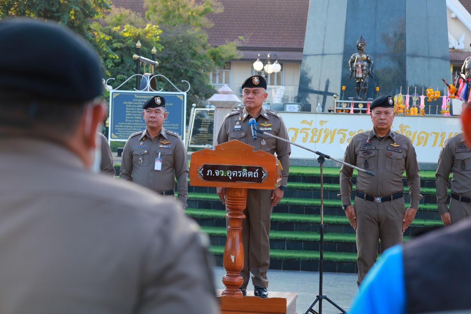 วันที่ (20 พ.ย.66) เวลา 17.00 น. พล.ต.ต.สุทธิพงศ์ เป๊กทอง ผบก.ภ.จว.อุตรดิตถ์ เป็นประธาน พร้อมด้วย พ.ต.อ.สุเทพ ประภากรณ์ รอง ผบก.ฯ, พ.ต.อ.พีระเพชร อุบลจิตต์ รอง ผบก.ฯ ทำพิธีปล่อยแถวระดมกวาดล้างอาชญากรรมในช่วงก่อนเทศกาลวันลอยกระทง โดยมีผู้เข้าร่วมพิธีดังนี้ ผกก.สืบสวน ภ.จว.อุตรดิตถ์, ผกก.สภ.เมืองอุตรดิตถ์, ผกก.สภ.ลับแล, ผกก.สภ.วังกะพี้, ผกก.สภ.ด่านแม่คำมัน, หน่วยตำรวจในพื้นที่ (พฐ., ทล., ตม., ทท.) เจ้าพนักงานฝ่ายปกครอง, เจ้าหน้าที่ส่วนท้องถิ่น และอาสาสมัครกู้ภัยฯ ณ บริเวณอนุสาวรีย์พระยาพิชัยดาบหัก อ.เมืองอุตรดิตถ์ จว.อุตรดิตถ์