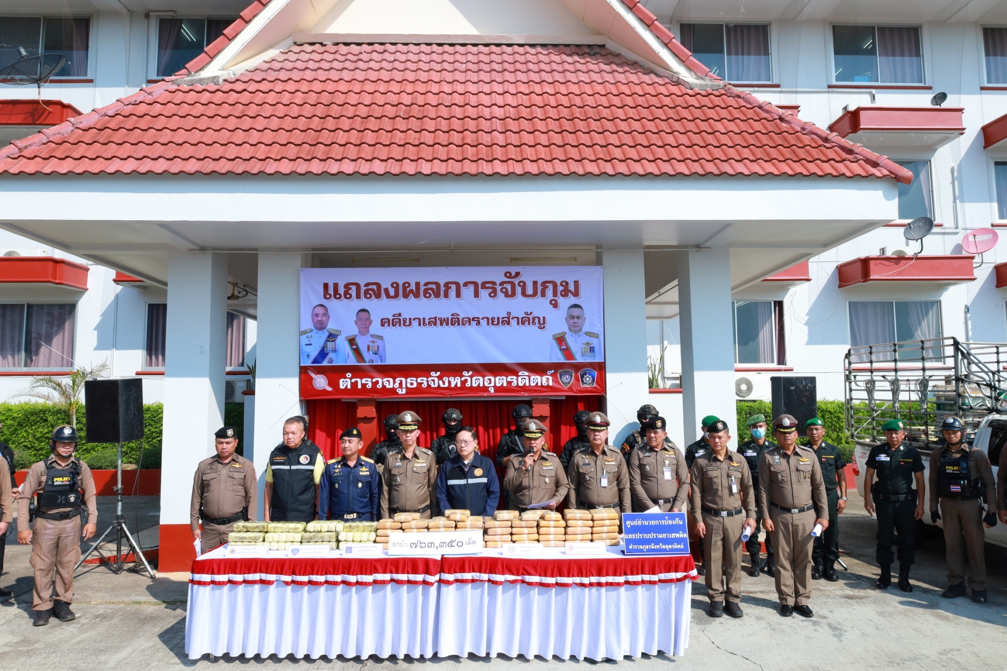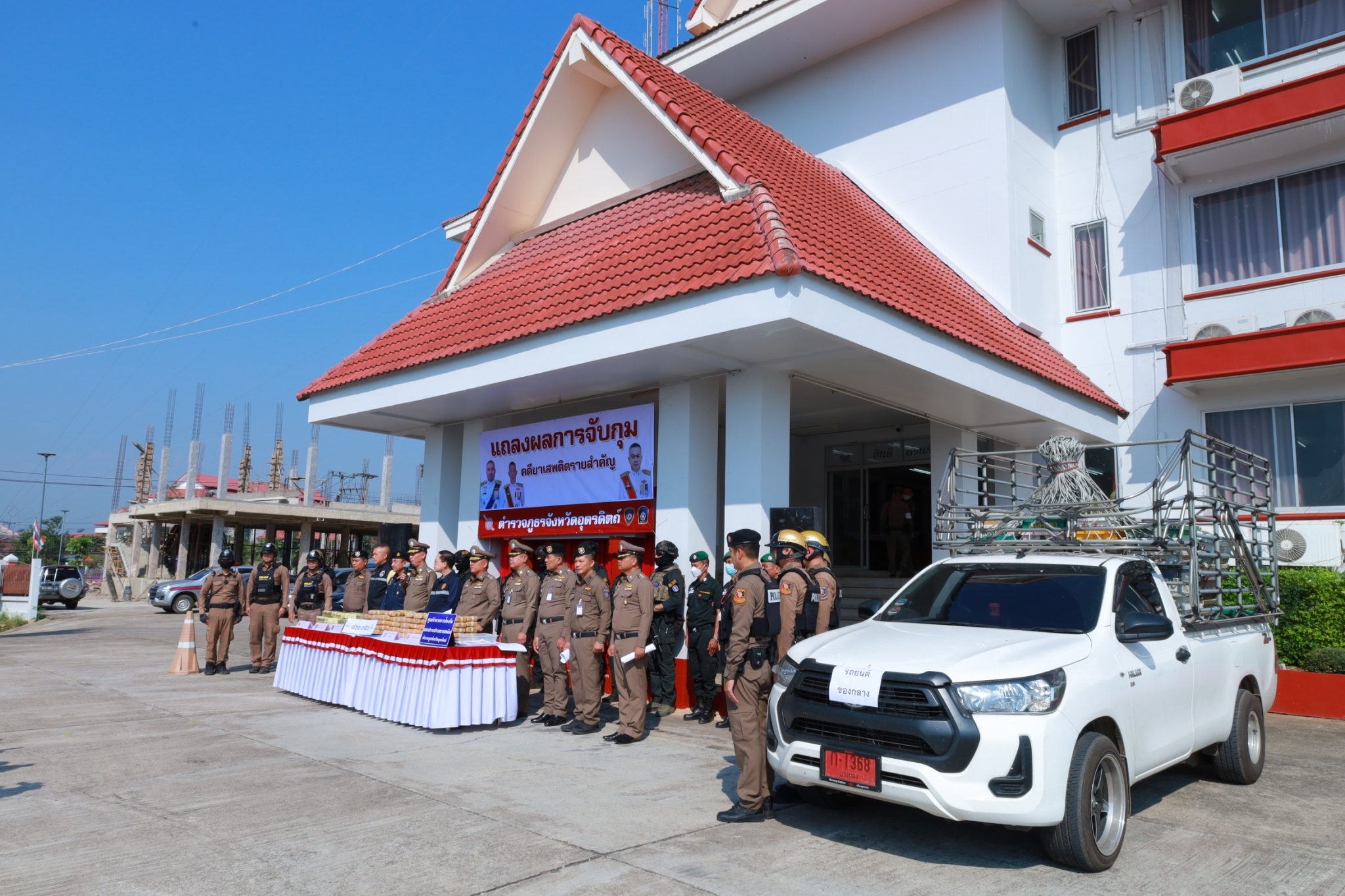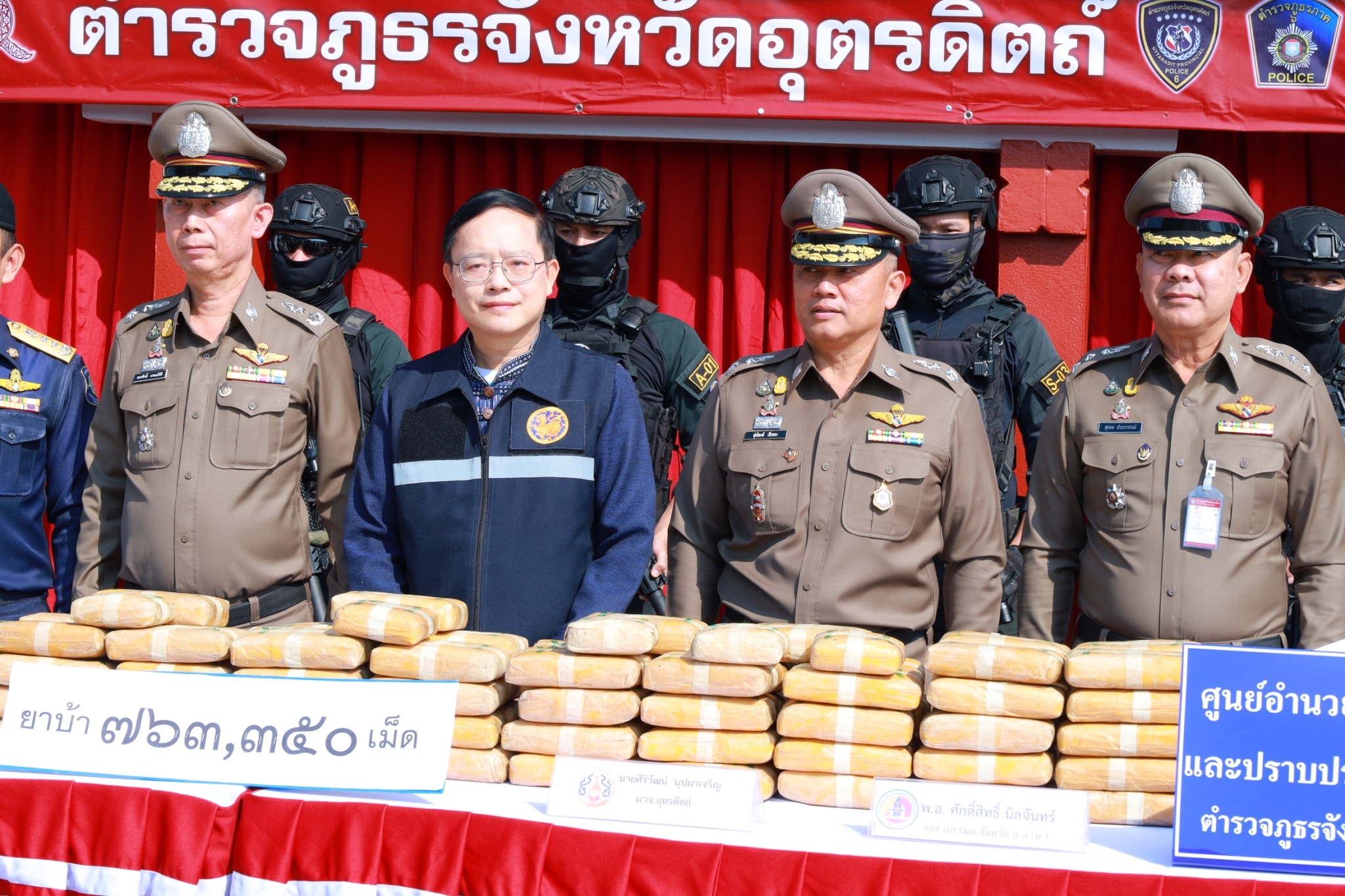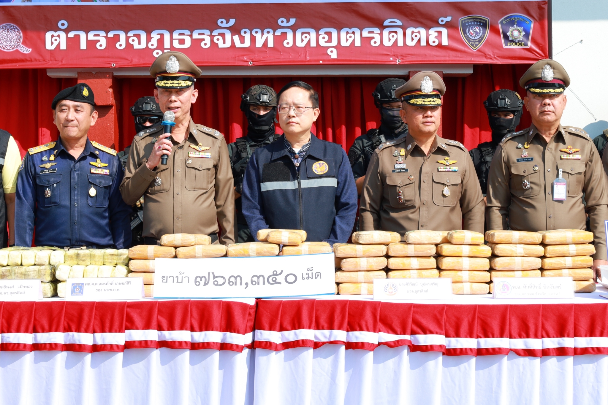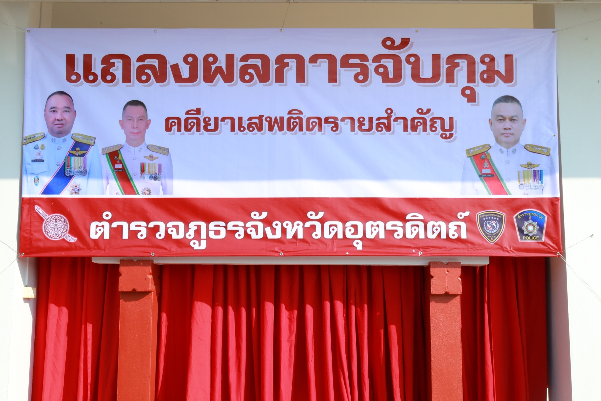ร่วมกันแถลงผลการจับกุมคดียาเสพติดรายสำคัญ 2 ราย ผู้ต้องหา 3 คน รายที่ 1 วันที่ 11 มกราคม 2567 เวลาประมาณ 21.50 น. สถานที่เกิดเหตุบริเวณริมถนนสายทุ่งยั้ง – อุตรดิตถ์ หน้าสำนักงานขนส่ง(แห่งเก่า) ต.ทุ่งยั้ง อ.ลับแล จ.อุตรดิตถ์ และรายที่ 2 วันที่ 16 มกราคม 2567 เวลาประมาณ 03:30 น.บริเวณริมถนนหมายเลข 11 (อุตรดิตถ์ – พิษณุโลก) ต.หาดกรวด อ.เมือง จ.อุตรดิตถ์ ของกลางยาบ้ารวม 763,350 เม็ด ตรวจยึดทรัพย์สินเป็นรถยนต์ และรถจักรยานยนต์ รวม 2 คัน รวมราคาทรัพย์สินประมาณ 668,000 บาท