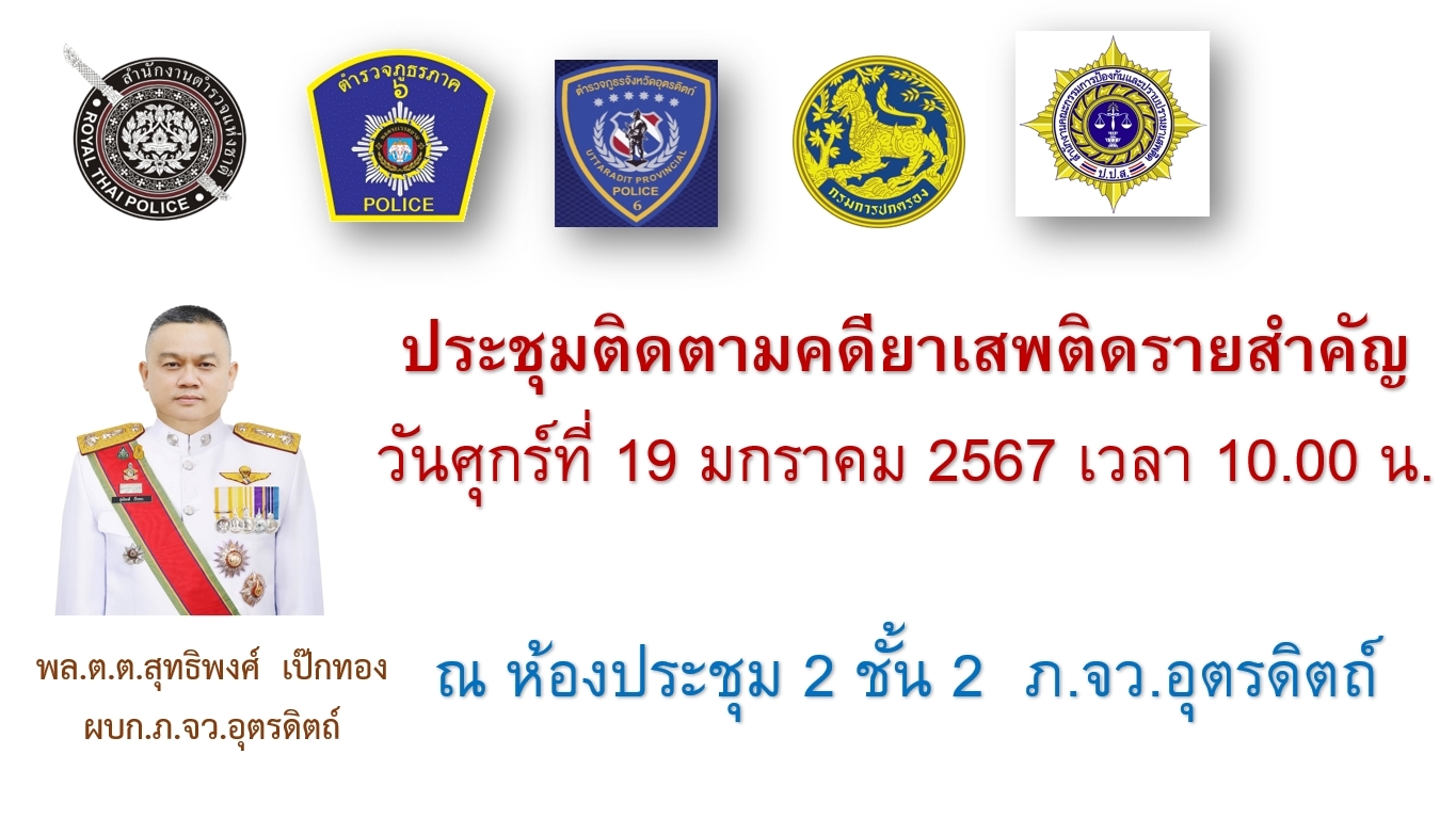 นายสราวุธ ภักดี ผอ.สำนักงาน ป.ป.ส.ภ.6, พ.อ.ศักดิ์สิทธิ์ นิลจันทร์ รอง ผอ.รมน.จังหวัด อต.(ท.),พ.ต.อ.สุเทพ ประภากรณ์ รอง ผบก.ภ.จว.อุตรดิตถ์, พ.ต.อ.สุทธิพงศ์ จันทร์พุฒ รอง ผบก.ภ.จว.อุตรดิตถ์ , พ.ต.อ.พีระเพชร อุบลจิตต์ รอง ผบก.ภ.จว.อุตรดิตถ์, พ.ต.อ.ไกรสิทธิ์ พรหมปฏิมา ผกก.สภ.เมืองอุตรดิตถ์, พ.ต.อ.อนุสรณ์ ดังก้อง ผกก.สภ.ตรอน (หน.ปส.ภ.จว.อุตรดิตถ์)