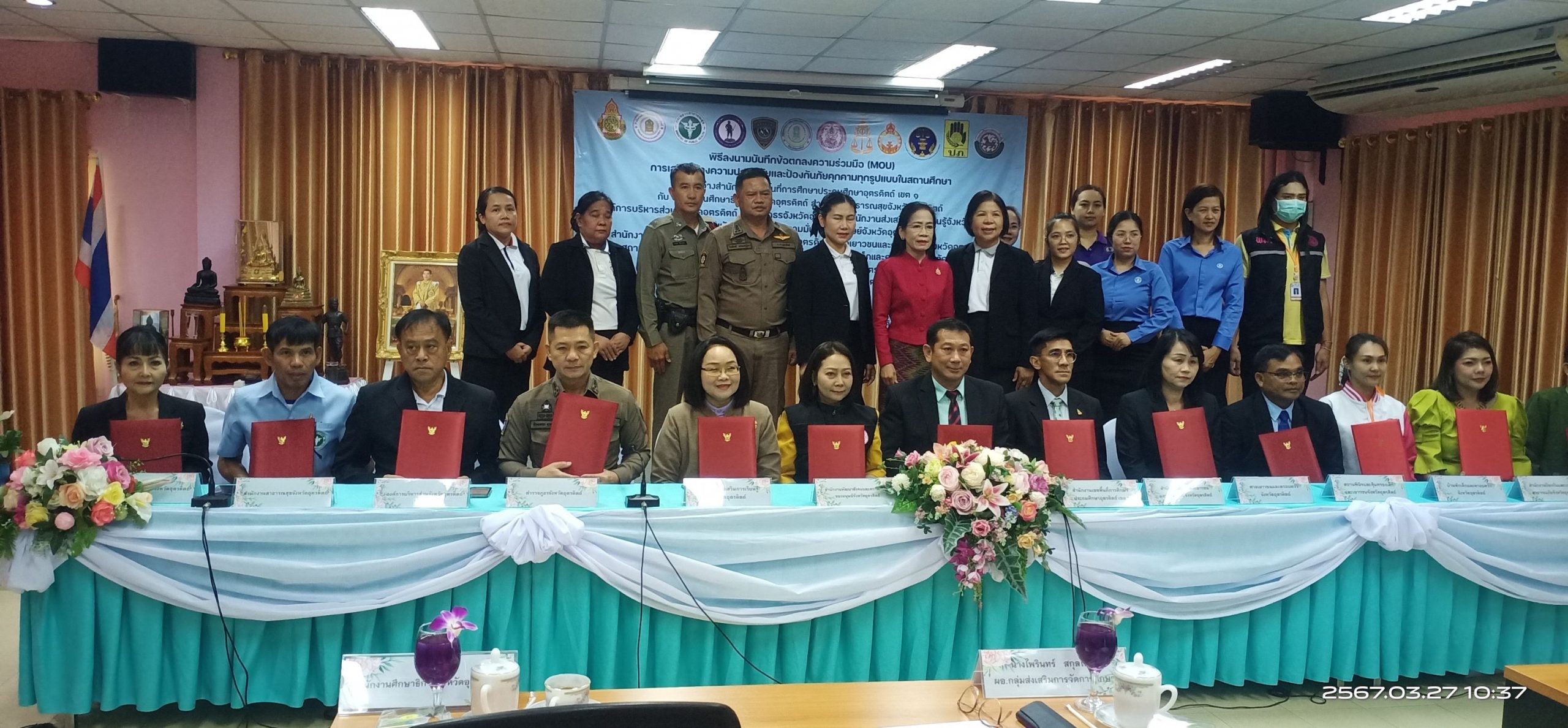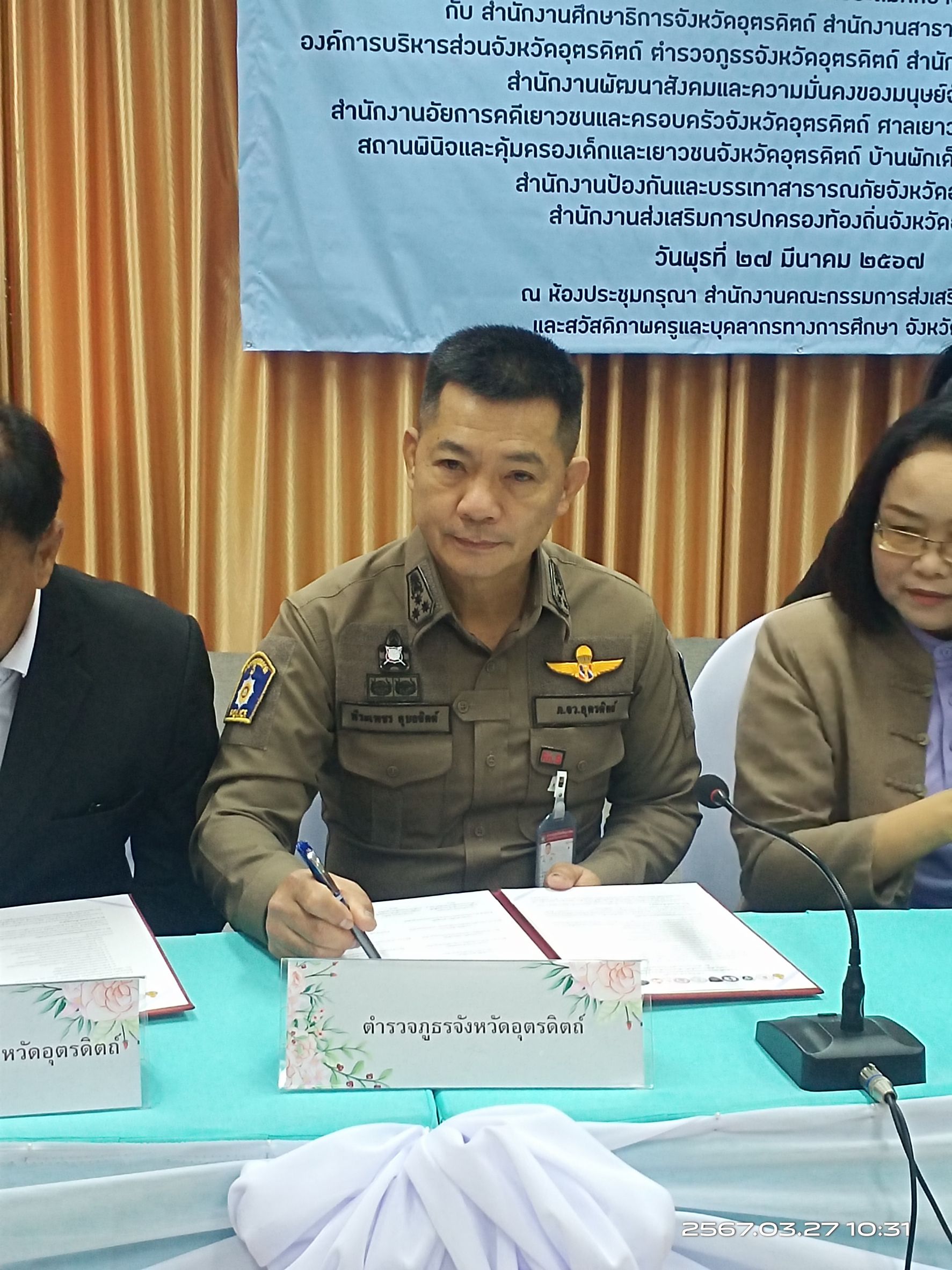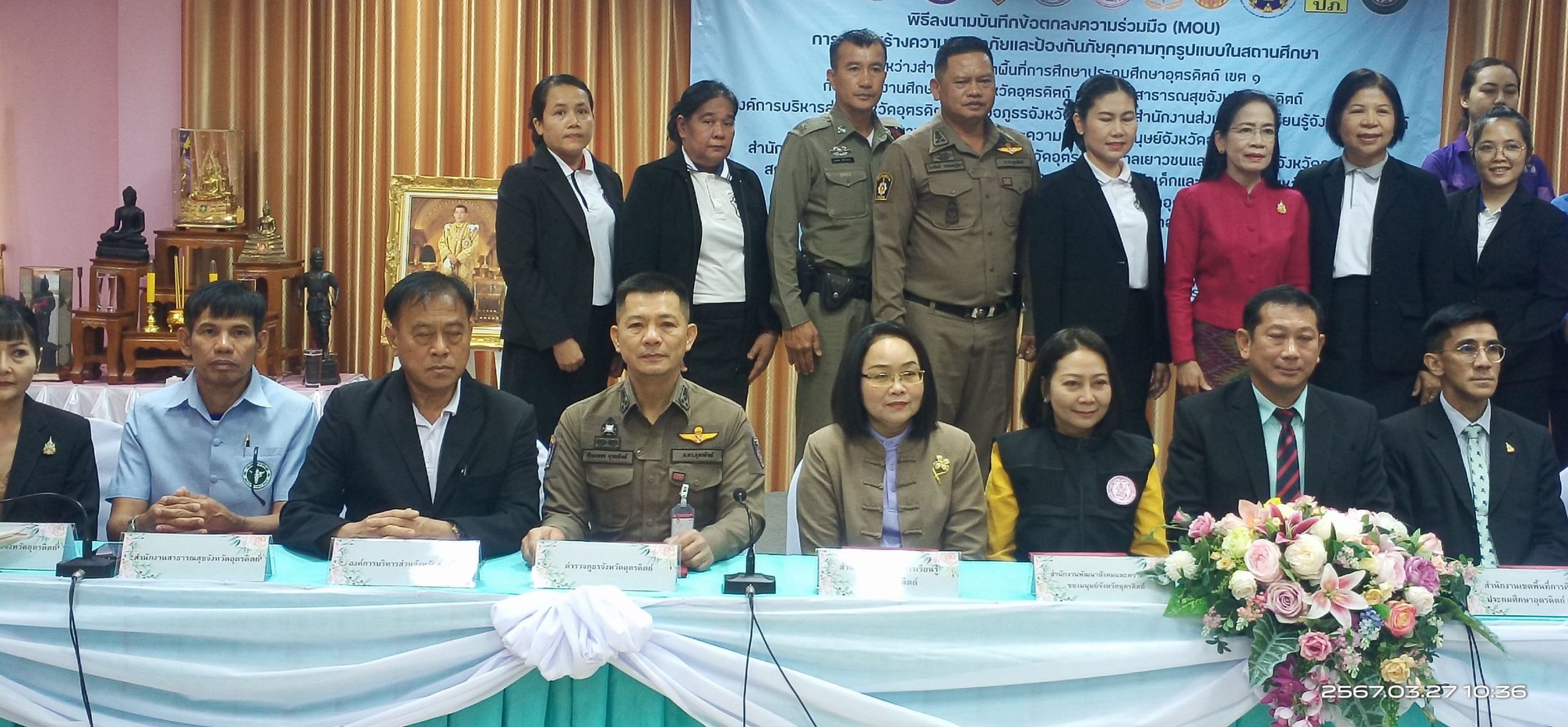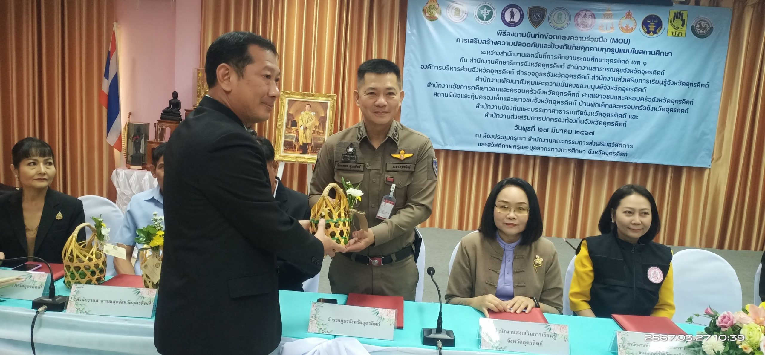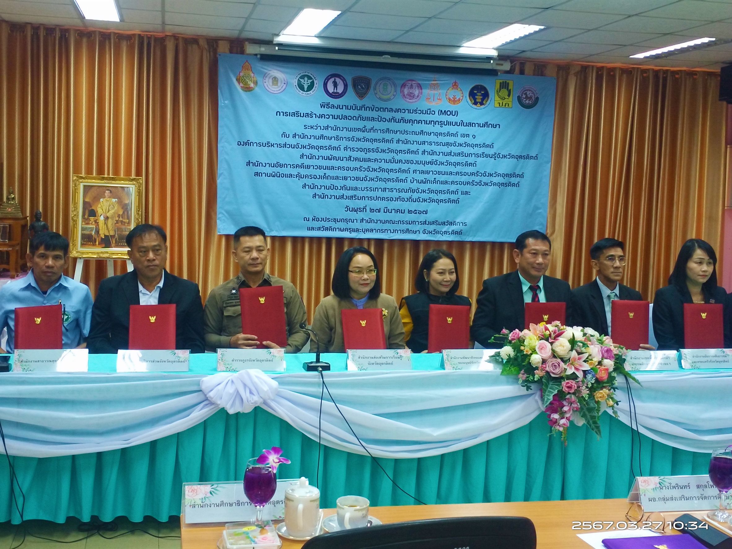 พ.ต.อ.พีระเพชร อุบลจิตต์ รอง ผบก.ภ.จว.อุตรดิตถ์ เข้าร่วมลงนามบันทึกข้อตกลงความร่วมมือ (MOU) การเสริมสร้างความปลอดภัยและป้องกันภัยคุกคามทุกรูปแบบในสถานศึกษา ณ ห้องประชุมกรุณา สำนักงานเขตพื้นที่การศึกษาประถมศึกษาอุตรดิตถ์ เขต ๑ อำเภอเมือง จังหวัดอุตรดิตถ์