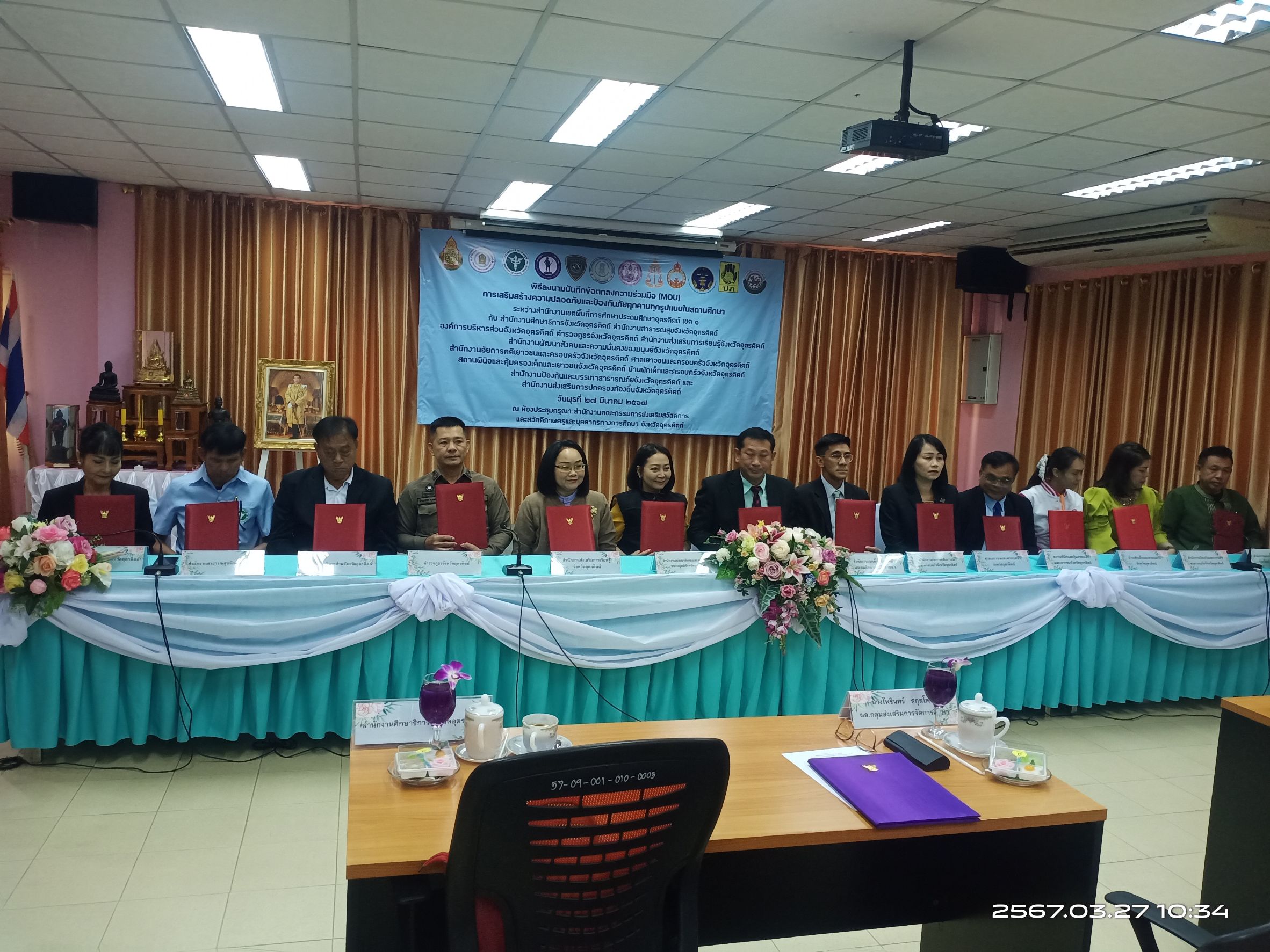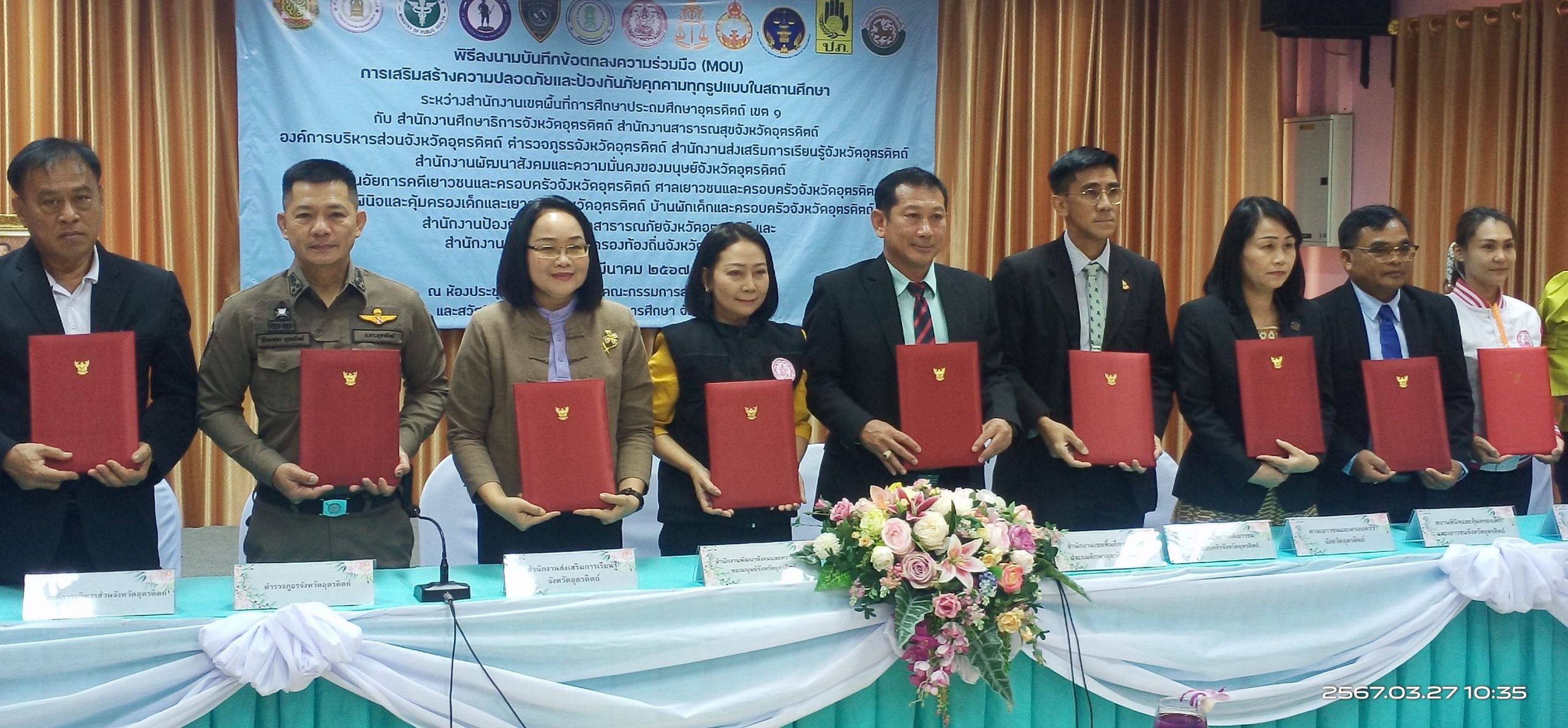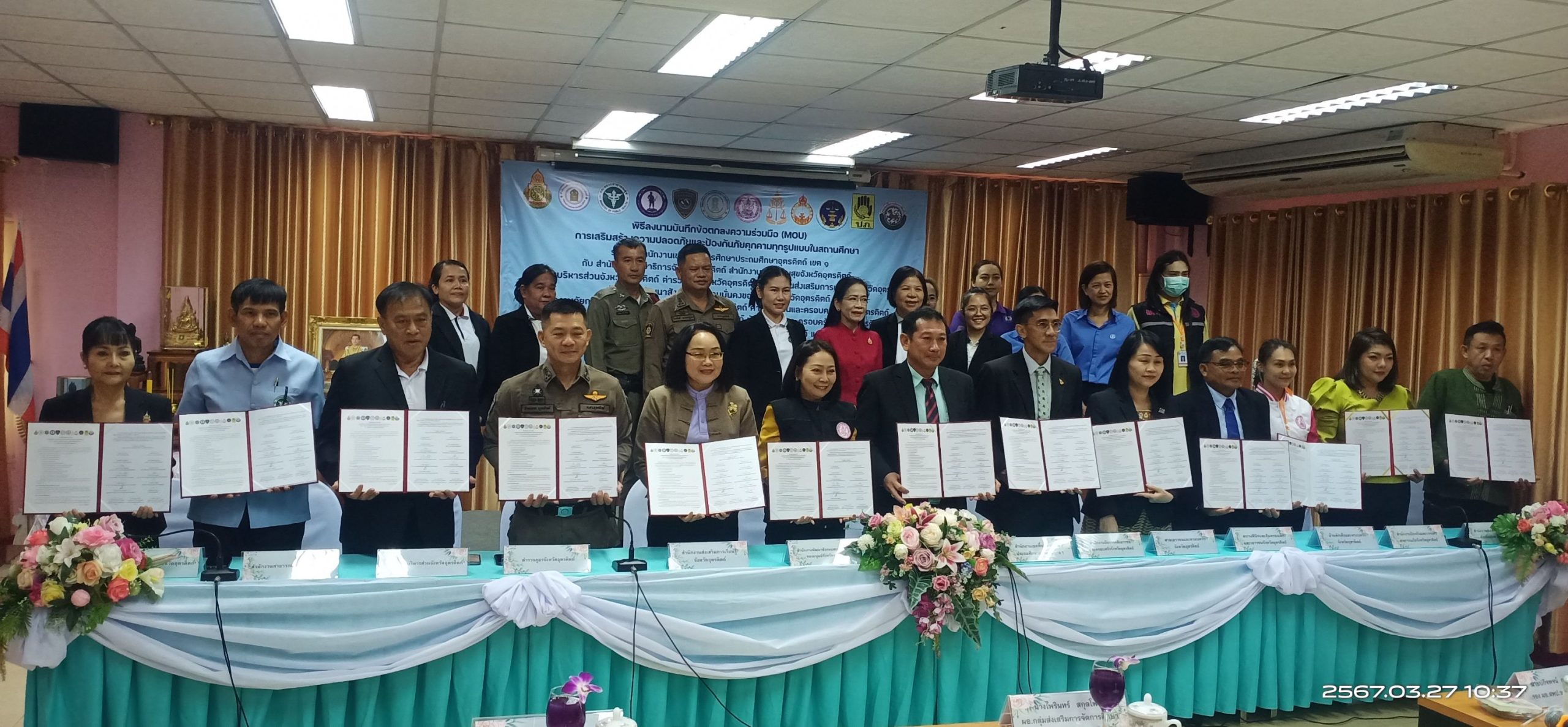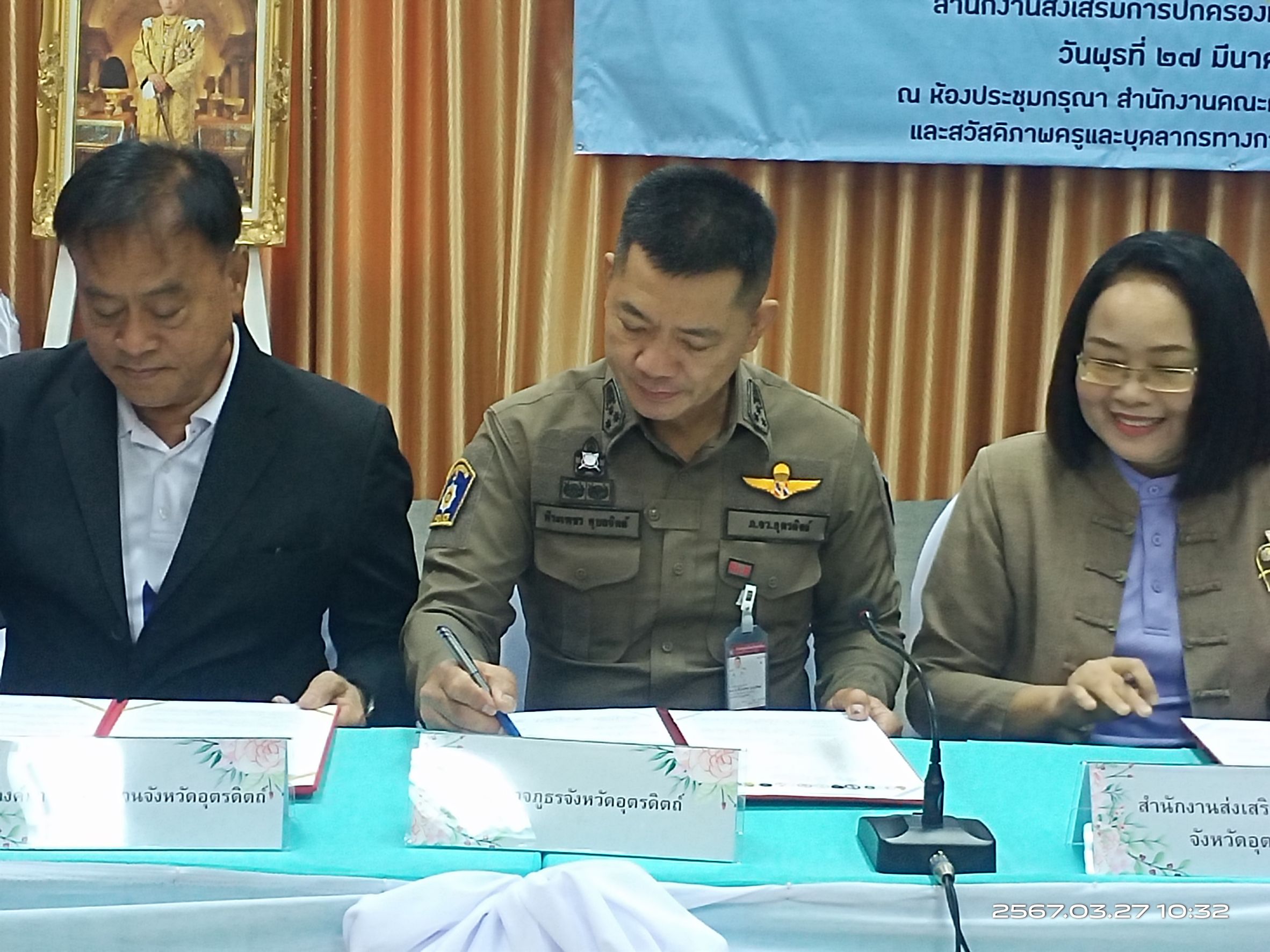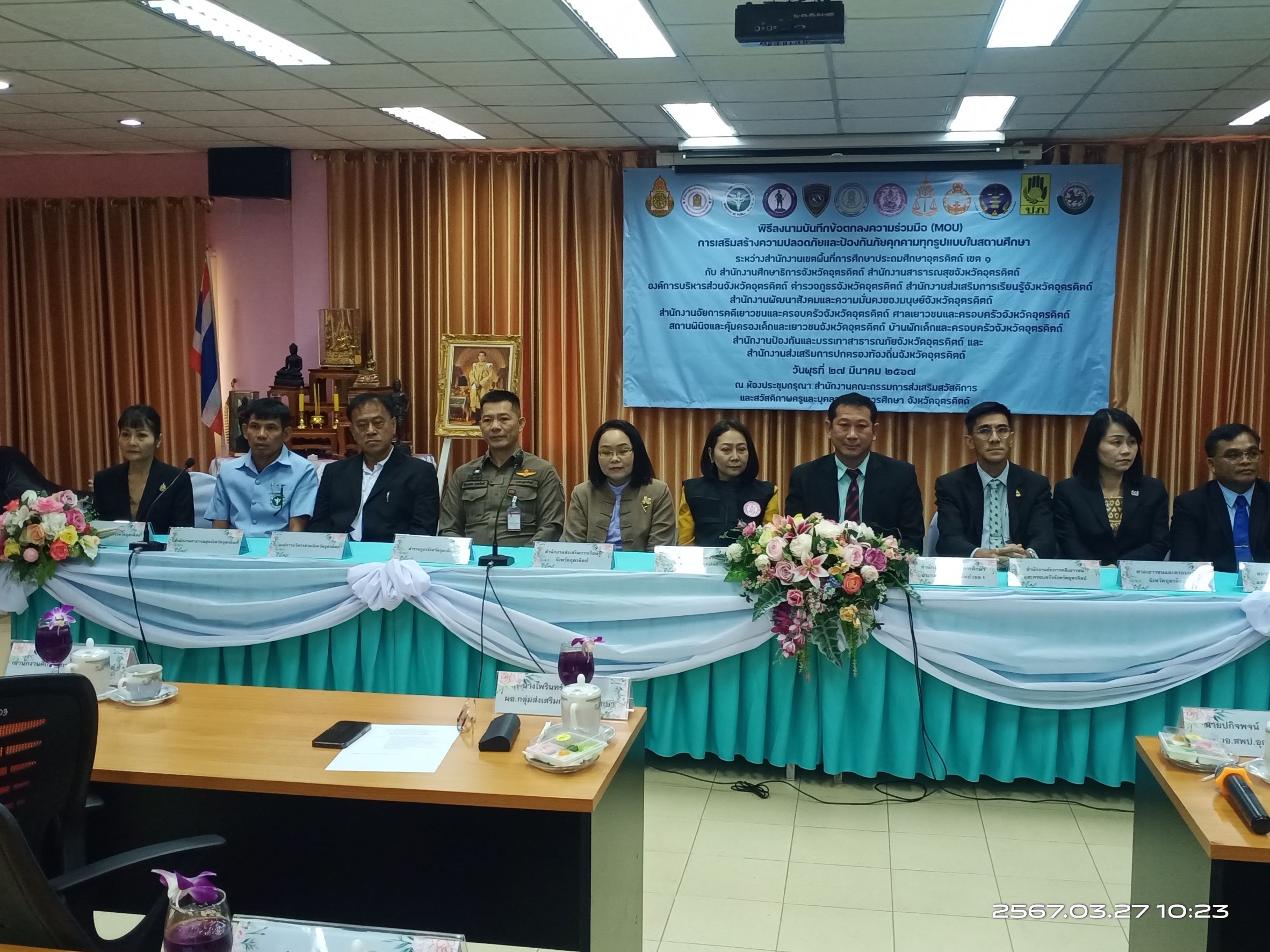 พ.ต.อ.พีระเพชร อุบลจิตต์ รอง ผบก.ภ.จว.อุตรดิตถ์ เข้าร่วมลงนามบันทึกข้อตกลงความร่วมมือ (MOU) การเสริมสร้างความปลอดภัยและป้องกันภัยคุกคามทุกรูปแบบในสถานศึกษา ณ ห้องประชุมกรุณา สำนักงานเขตพื้นที่การศึกษาประถมศึกษาอุตรดิตถ์ เขต ๑ อำเภอเมือง จังหวัดอุตรดิตถ์