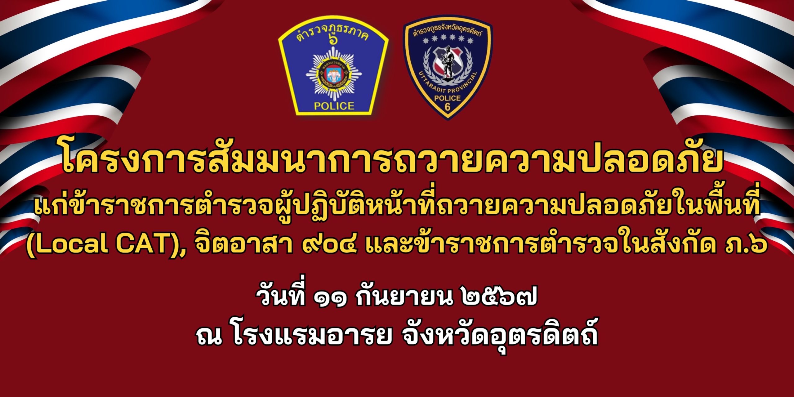 ร่วมโครงการสัมมนาการถวายความปลอดภัย แก่ข้าราชการตำรวจผู้ปฏิบัติหน้าที่ถวายความปลอดภัยในพื้นที่ (Local CAT), จิตอาสา 904 และข้าราชการตำรวจในสังกัดตำรวจภูธรภาค 6 ณ โรงแรมอารย จว.อุตรดิตถ์