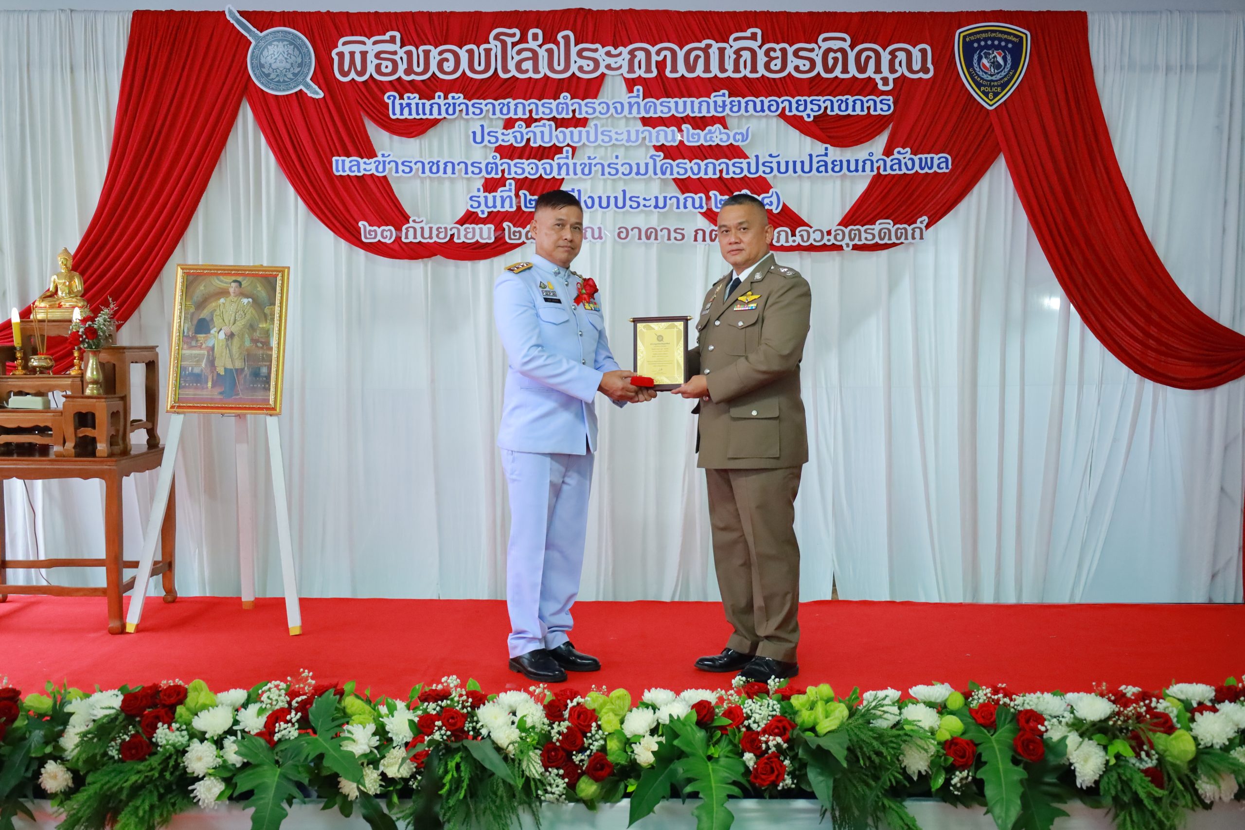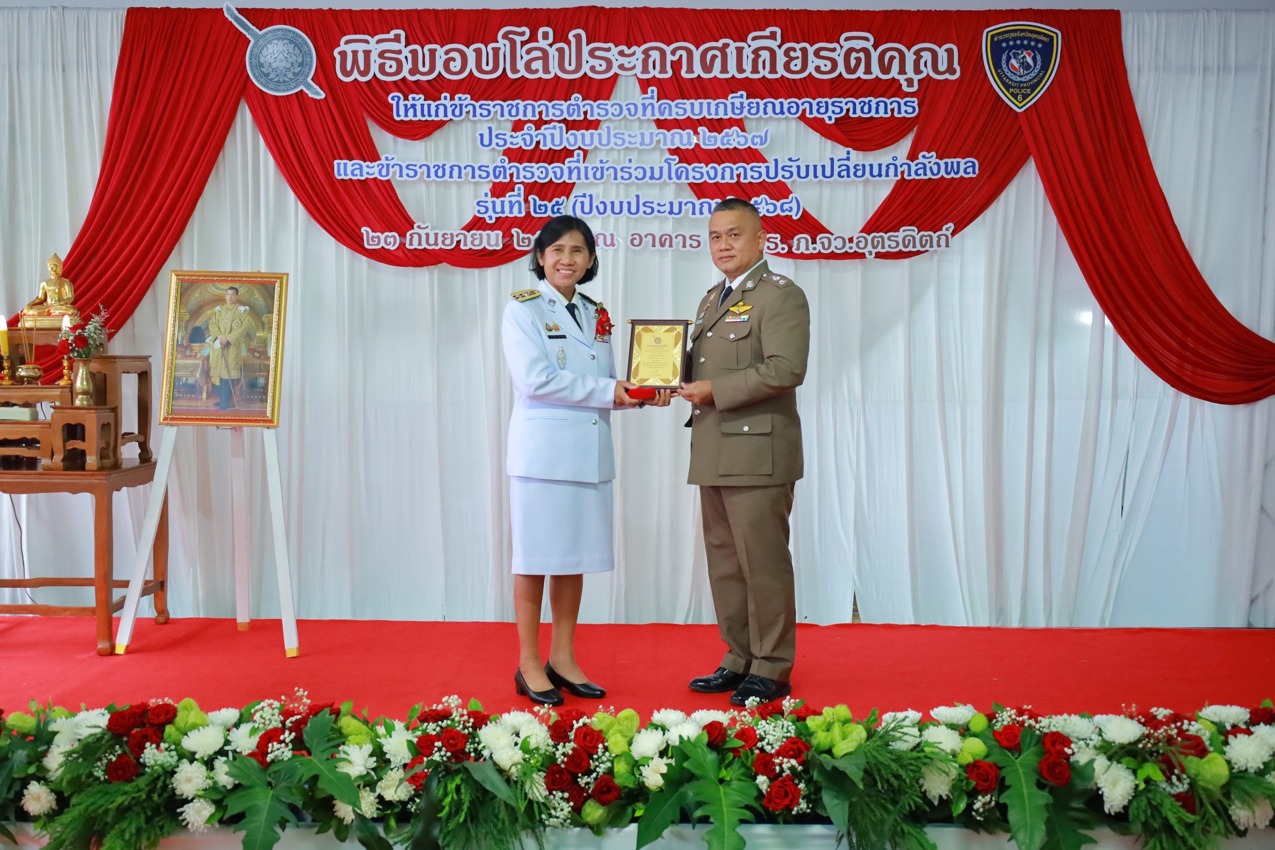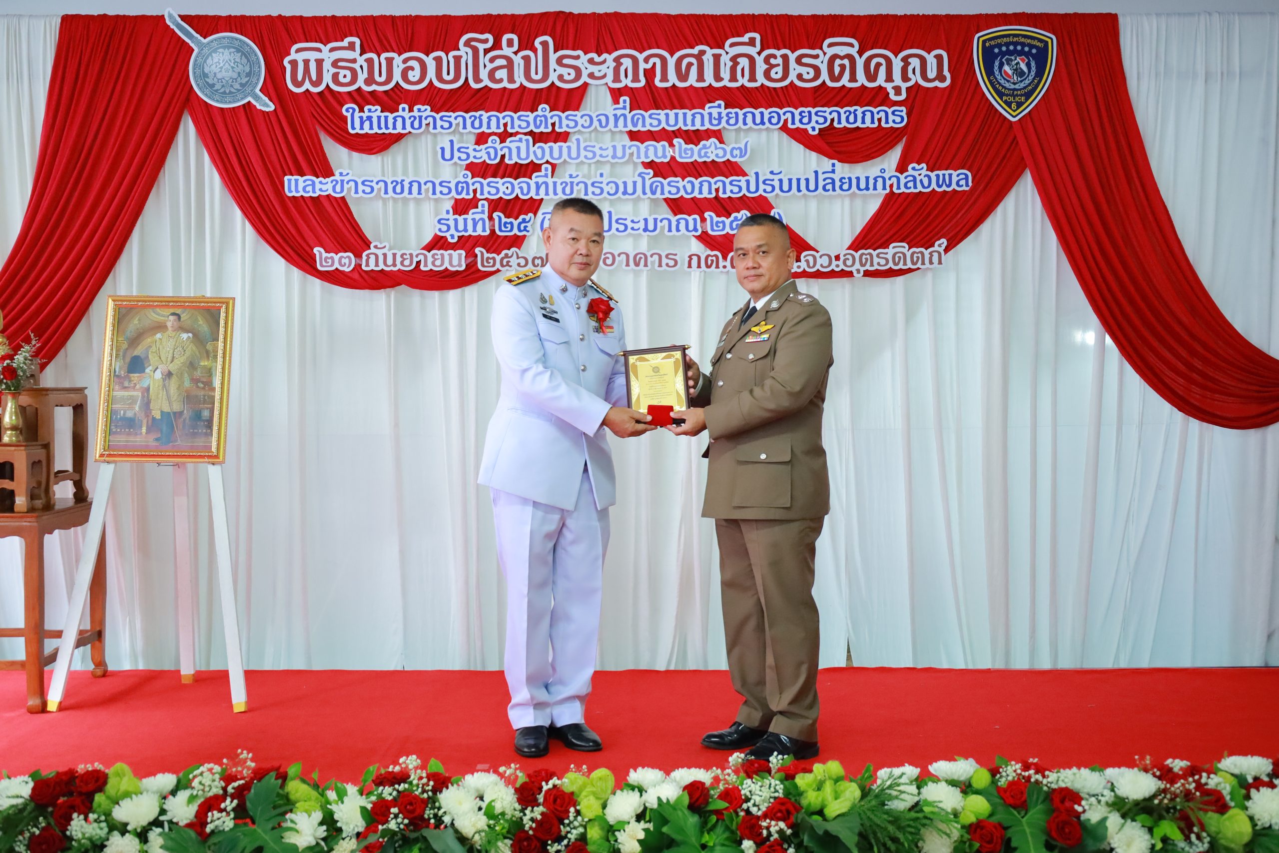พิธีมอบประกาศเกียรติคุณให้แก่ข้าราชการตำรวจในสังกัด ภ.จว.อุตรดิตถ์ ที่ครบเกษียณอายุราชการ ประจำปีงบประมาณ พ.ศ.2567 และข้าราชการตำรวจที่เข้าร่วมโครงการปรับเปลี่ยนกำลังพล รุ่นที่ 25 ปีงบประมาณ 2568